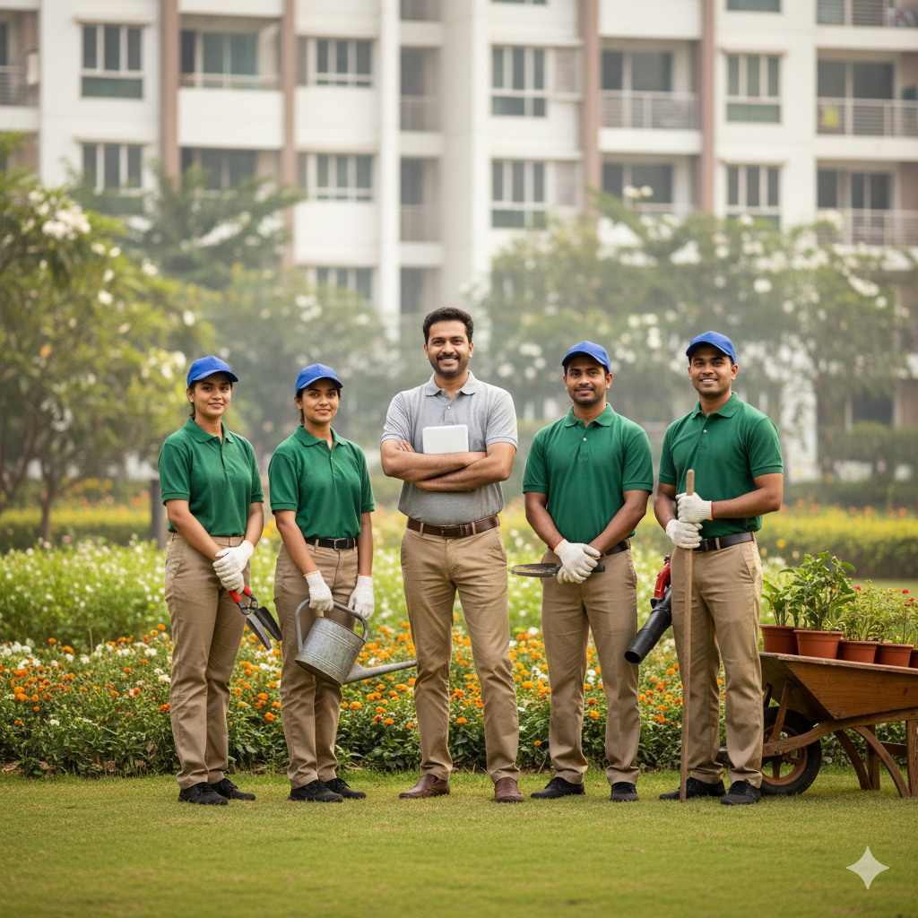 Regular upkeep of gardens and common areas within residential societies.